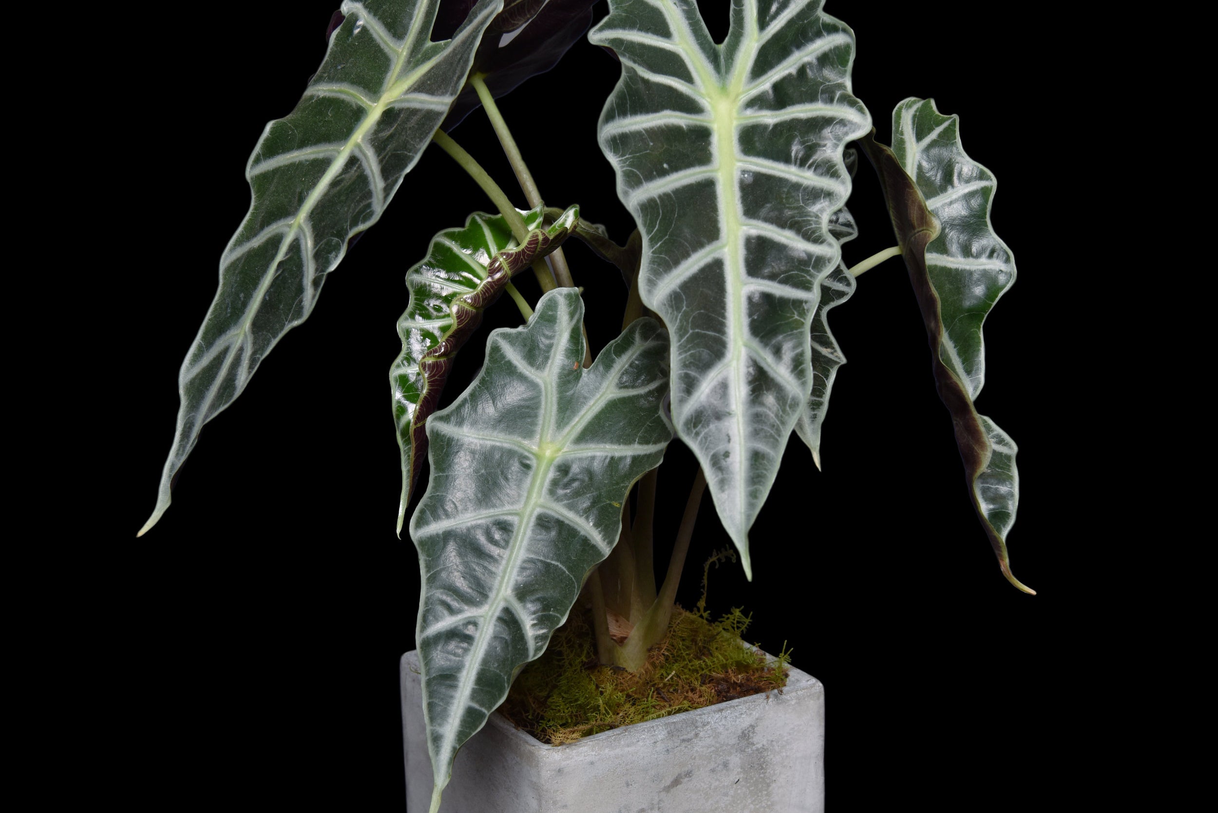 One of the most interesting and alluring foliage plants, our Alocasia Plant is a long-lasting indoor plant with an amazing purple/black under-side to their leaves.