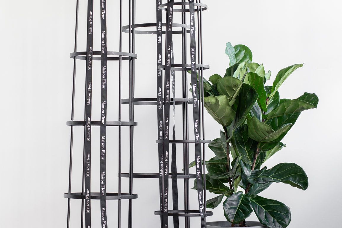 Dark iron garden frame with a ball finial. A great ornamental piece in the garden that is ideal for anything climbing like beans, sweet peas, Stephanotis or Jasmine. Metal will naturally weather outdoors overtime. This product has been treated with anti-rusting paint.