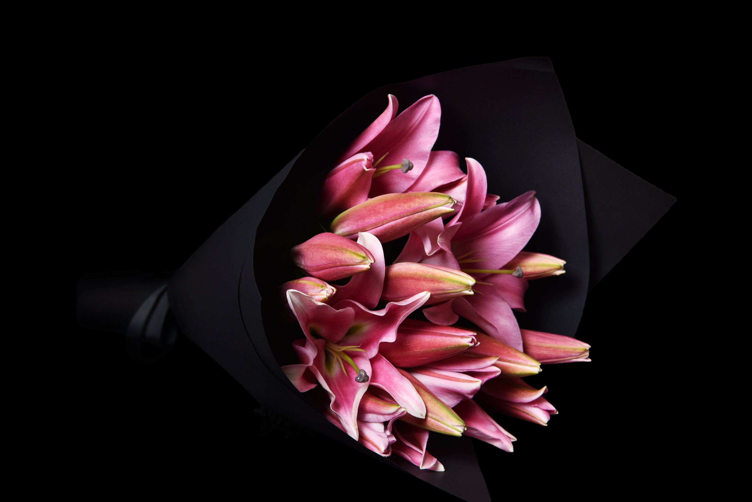 Long stemmed and scented, our Pink Oriental Lily Wrap is the perfect long lasting gift, presented in our signature wrap and finished with our printed Maison Fleur ribbon.